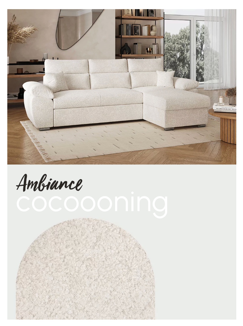 BELUTI - Canapé d'angle panoramique en U Convertible. Tissu Design. Lit + Coffre de Rangement