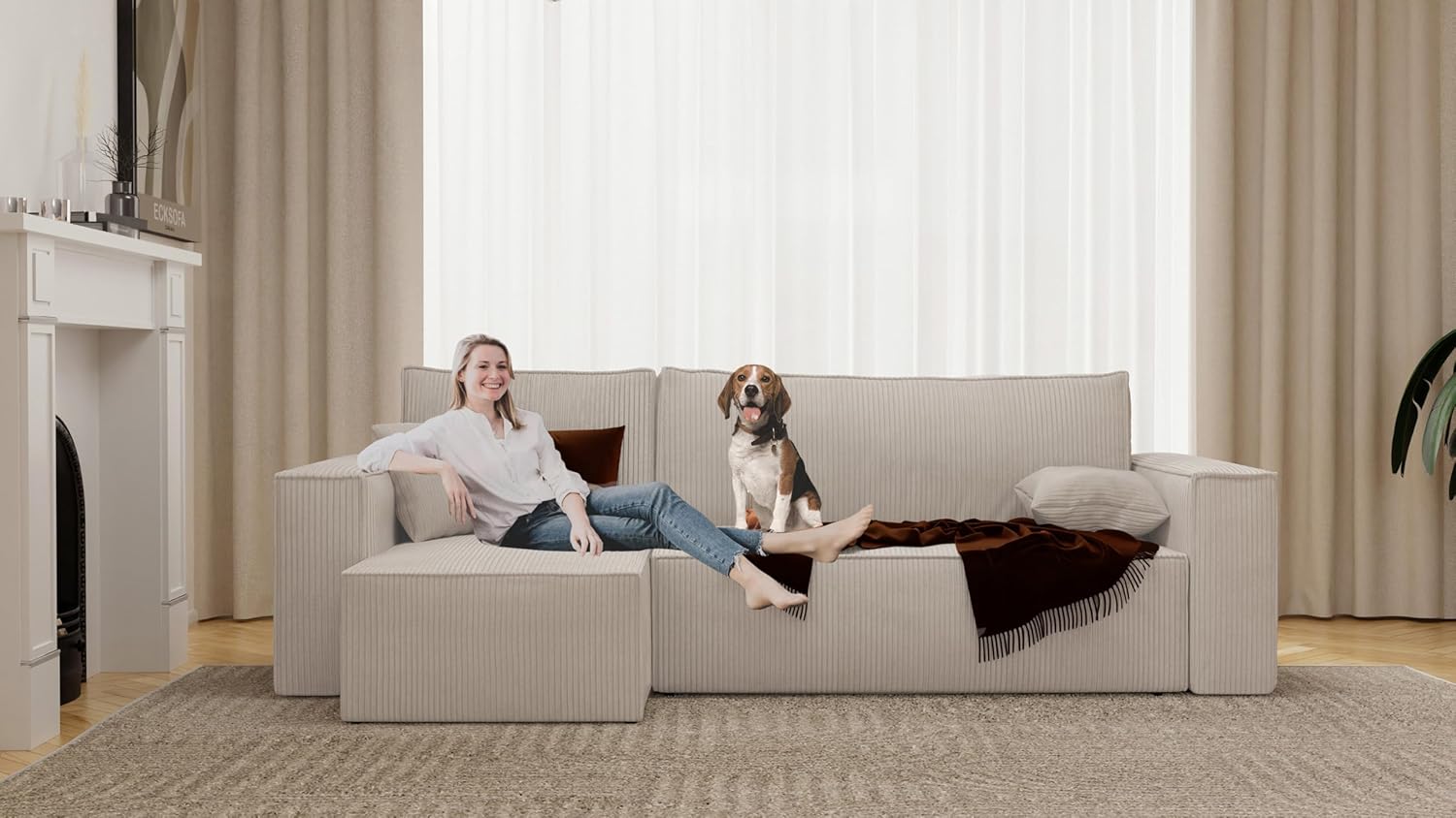 GREKPOL Canapé d'angle Convertible 244x145 Velours Côtelé - avec Espace de Rangement