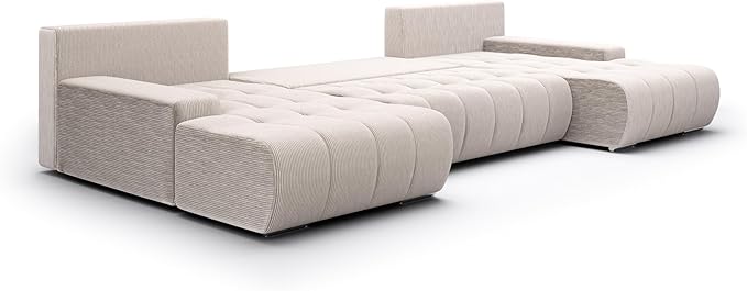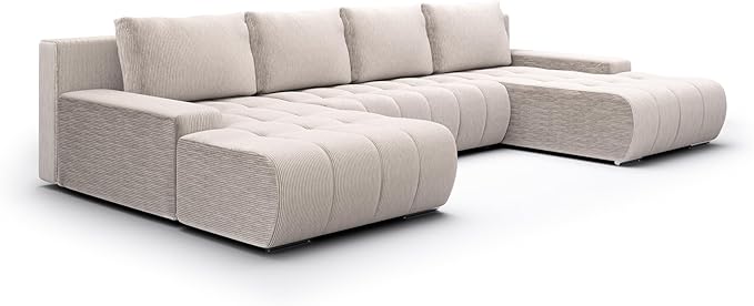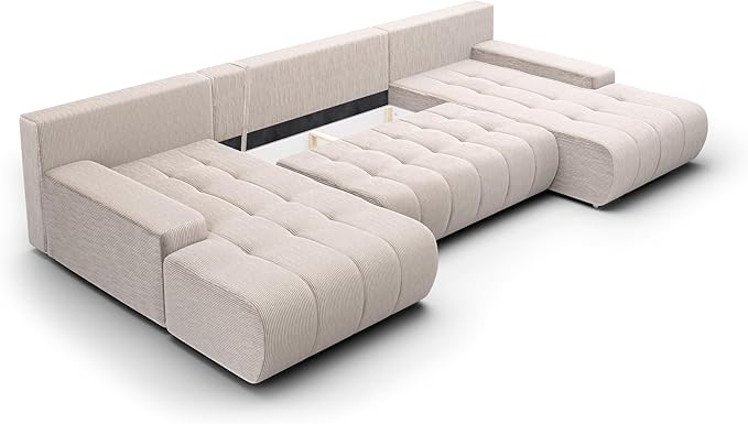 Tendencio Canapé panoramique Convertible BOLUTI en Velours côtelé avec Coffre de Rangementq